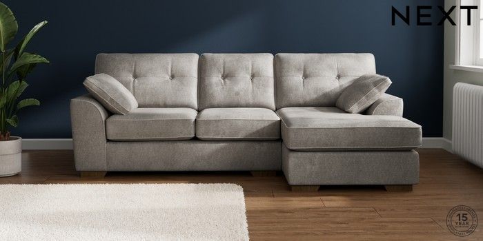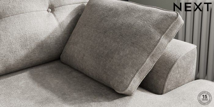 7.2.6 Buy Stamford Buttoned Back Medium Sofa Chaise - Right Hand Plush Chenille Light Grey Large Square Angle - Mid from the Next UK online shop Click here to use our accessible website