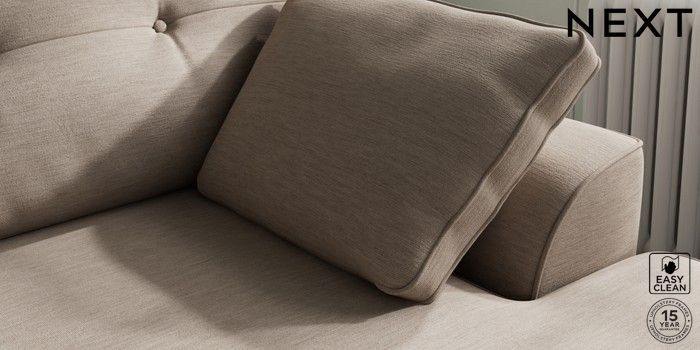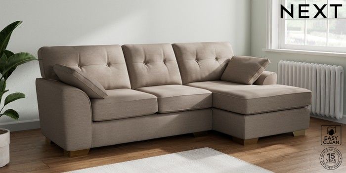 7.2.10 Buy Stamford Buttoned Back Medium Sofa Chaise - Right Hand Fine Chenille Easy Clean Mid Taupe Brown Large Square Angle - Brushed Brass from the Next UK online shop Click here to use our accessible website