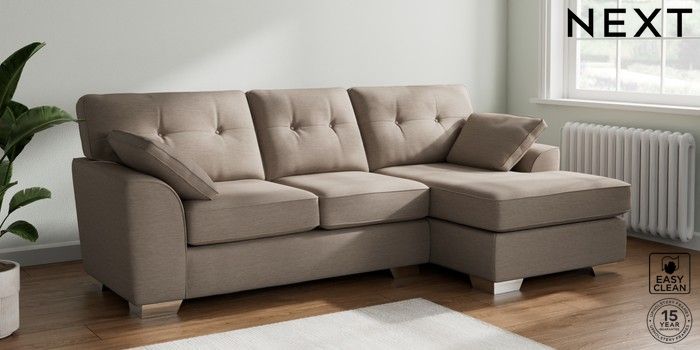 6.12.1 Buy Stamford Buttoned Back Medium Sofa Chaise - Right Hand Fine Chenille Easy Clean Mid Taupe Brown Large Square Angle - Chrome Metal from the Next UK online shop Click here to use our accessible website