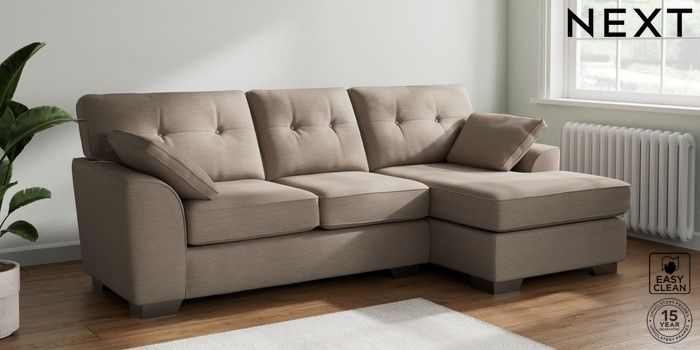 7.2.10 Buy Stamford Buttoned Back Medium Sofa Chaise - Right Hand Fine Chenille Easy Clean Mid Taupe Brown Large Square Angle - Gunmetal from the Next UK online shop Click here to use our accessible website