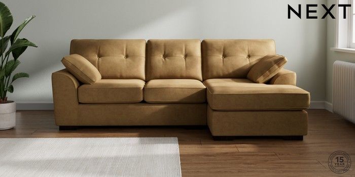 7.2.6 Buy Stamford Buttoned Back Medium Sofa Chaise - Right Hand Luxe Chenille Honey Yellow Large Square Angle - Dark from the Next UK online shop Click here to use our accessible website