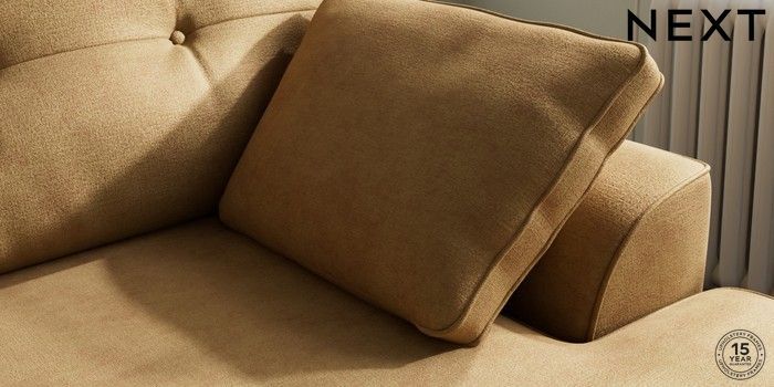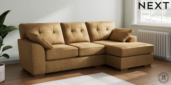 7.2.6 Buy Stamford Buttoned Back Medium Sofa Chaise - Right Hand Luxe Chenille Honey Yellow Large Square Angle - Mid from the Next UK online shop Click here to use our accessible website