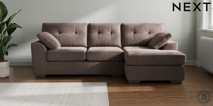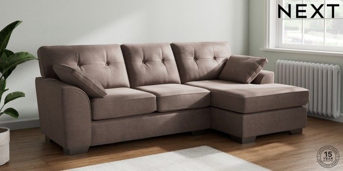 7.2.10 Buy Stamford Buttoned Back Medium Sofa Chaise - Right Hand Luxe Chenille Mink Brown Large Square Angle - Gunmetal from the Next UK online shop Click here to use our accessible website