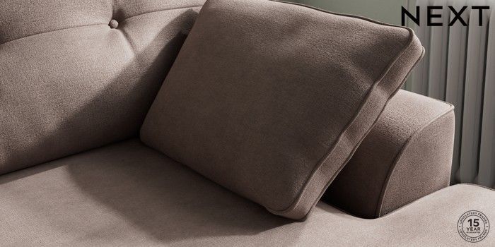 7.2.10 Buy Stamford Buttoned Back Medium Sofa Chaise - Right Hand Luxe Chenille Mink Brown Large Square Angle - Mid from the Next UK online shop Click here to use our accessible website