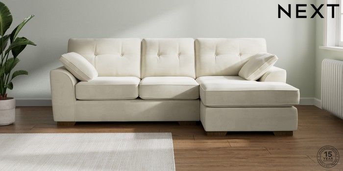 7.0.3 Buy Stamford Buttoned Back Medium Sofa Chaise - Right Hand Luxe Chenille Oyster Large Square Angle - Mid from the Next UK online shop Click here to use our accessible website