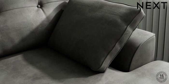 7.3.1 Buy Stamford Buttoned Back Medium Sofa Chaise - Right Hand Monza Faux Leather Easy Clean Dark Grey Large Square Angle - Gunmetal from the Next UK online shop Click here to use our accessible website