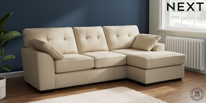 7.2.10 Buy Stamford Buttoned Back Medium Sofa Chaise - Right Hand Natural Mix Light Natural Large Square Angle - Dark from the Next UK online shop Click here to use our accessible website