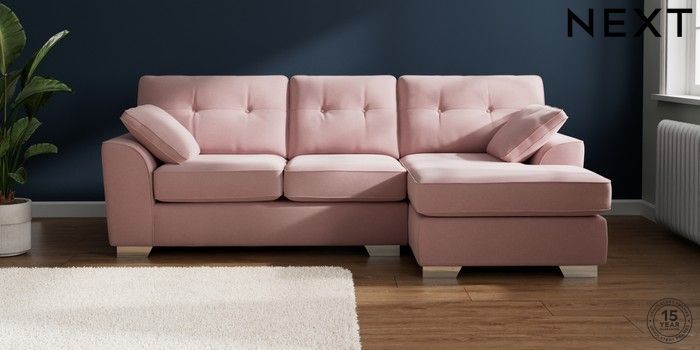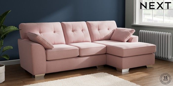 7.2.10 Buy Stamford Buttoned Back Medium Sofa Chaise - Right Hand Natural Mix Light Rose Pink Large Square Angle - Chrome Metal from the Next UK online shop Click here to use our accessible website
