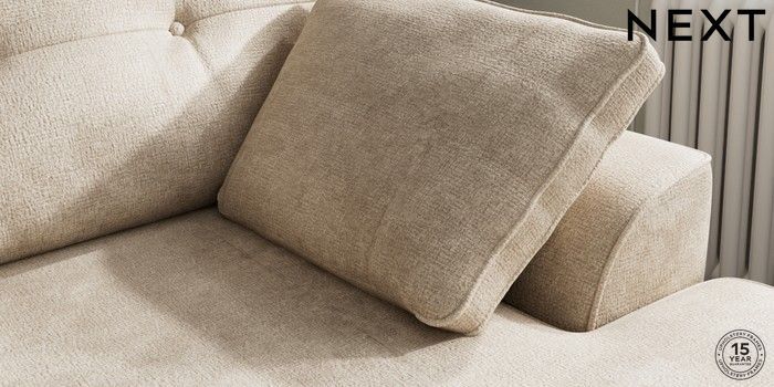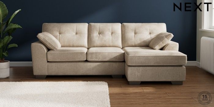 7.2.10 Buy Stamford Buttoned Back Medium Sofa Chaise - Right Hand Plush Chenille Light Natural Large Square Angle - Gunmetal from the Next UK online shop Click here to use our accessible website