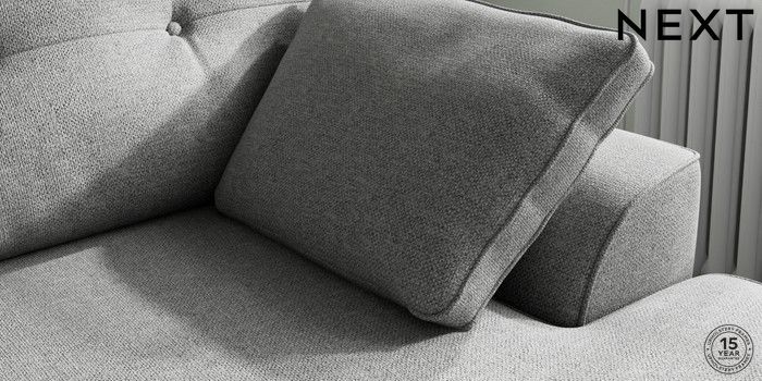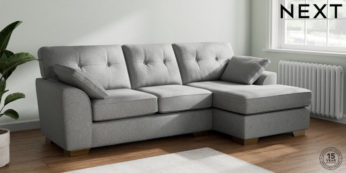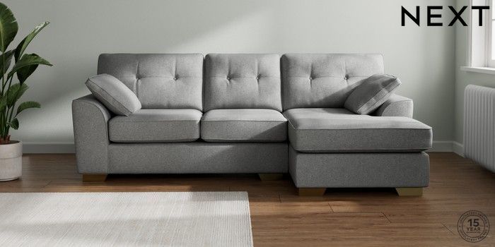 7.2.10 Buy Stamford Buttoned Back Medium Sofa Chaise - Right Hand Chunky Weave Mid Grey Large Square Angle - Brushed Brass from the Next UK online shop Click here to use our accessible website