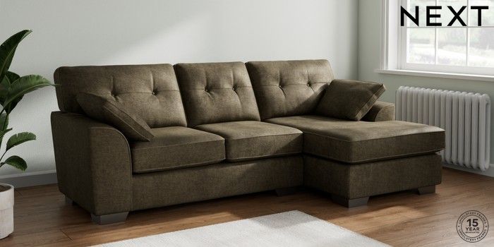 7.2.10 Buy Stamford Buttoned Back Medium Sofa Chaise - Right Hand Plush Chenille Moss Green Large Square Angle - Gunmetal from the Next UK online shop Click here to use our accessible website