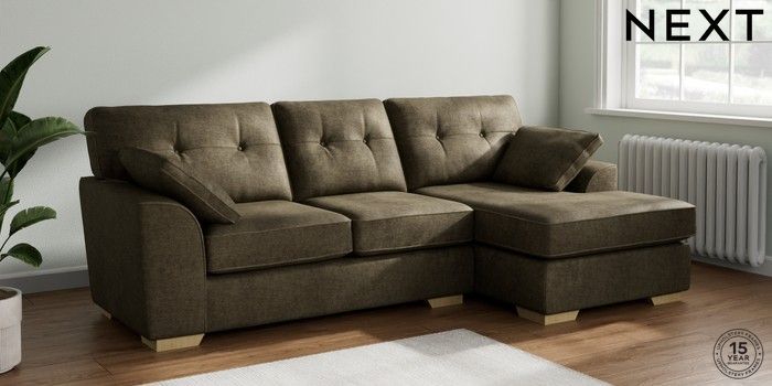 7.2.6 Buy Stamford Buttoned Back Medium Sofa Chaise - Right Hand Plush Chenille Moss Green Large Square Angle - Light from the Next UK online shop Click here to use our accessible website