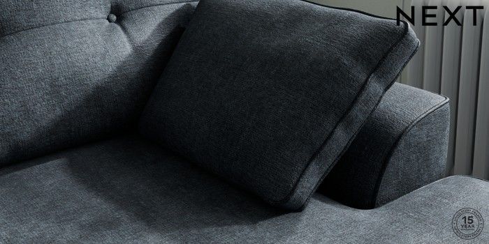 7.2.6 Buy Stamford Buttoned Back Medium Sofa Chaise - Right Hand Plush Chenille Slate Blue Large Square Angle - Gunmetal from the Next UK online shop Click here to use our accessible website