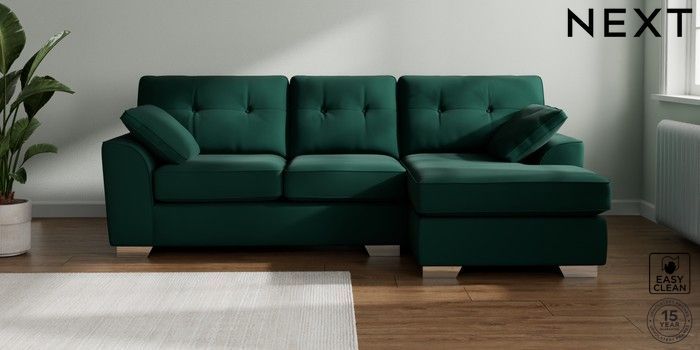 7.2.10 Buy Stamford Buttoned Back Medium Sofa Chaise - Right Hand Plush Velvet Easy Clean Bottle Green Large Square Angle - Chrome Metal from the Next UK online shop Click here to use our accessible website