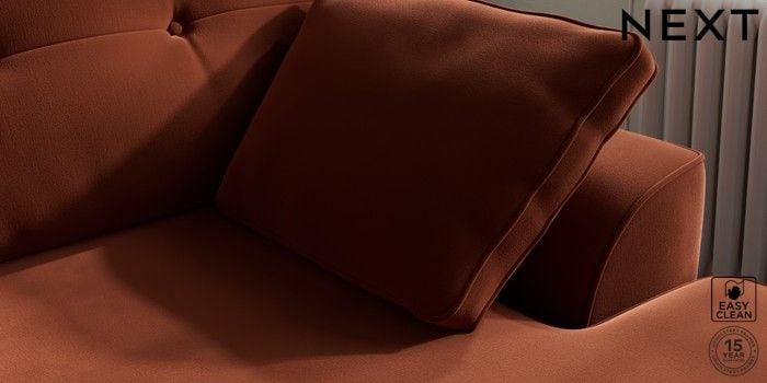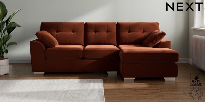 7.2.10 Buy Stamford Buttoned Back Medium Sofa Chaise - Right Hand Plush Velvet Easy Clean Ginger Orange Large Square Angle - Chrome Metal from the Next UK online shop Click here to use our accessible website