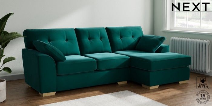 6.12.1 Buy Stamford Buttoned Back Medium Sofa Chaise - Right Hand Plush Velvet Easy Clean Juniper Green Large Square Angle - Light from the Next UK online shop Click here to use our accessible website