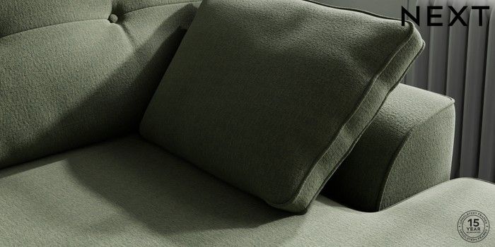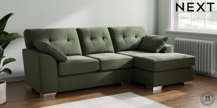7.2.10 Buy Stamford Buttoned Back Medium Sofa Chaise - Right Hand Relaxed Linen Look Dark Green Large Square Angle - Chrome Metal from the Next UK online shop Click here to use our accessible website