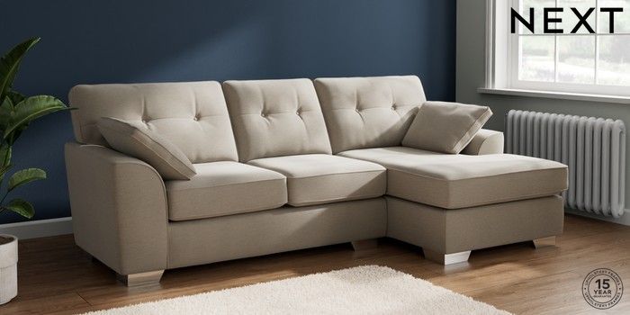 6.12.1 Buy Stamford Buttoned Back Medium Sofa Chaise - Right Hand Ripple Chenille Light Natural Large Square Angle - Chrome Metal from the Next UK online shop Click here to use our accessible website