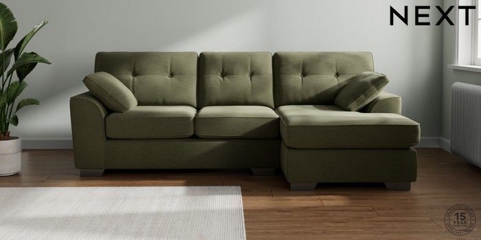 7.2.10 Buy Stamford Buttoned Back Medium Sofa Chaise - Right Hand Ripple Chenille Mid Moss Green Large Square Angle - Gunmetal from the Next UK online shop Click here to use our accessible website