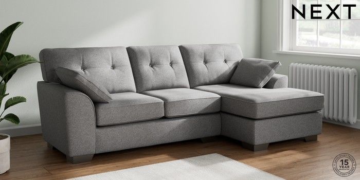 6.12.1 Buy Stamford Buttoned Back Medium Sofa Chaise - Right Hand Studio Chenille Mid Grey Large Square Angle - Gunmetal from the Next UK online shop Click here to use our accessible website