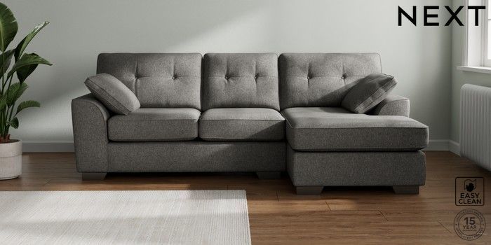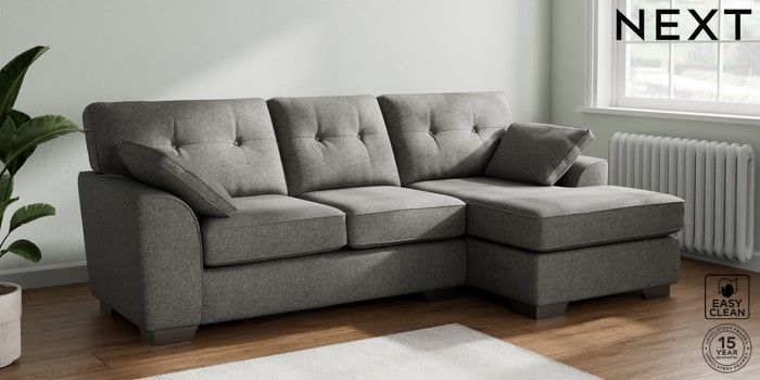 7.2.10 Buy Stamford Buttoned Back Medium Sofa Chaise - Right Hand Tweedy Blend Easy Clean Dark Grey Large Square Angle - Gunmetal from the Next UK online shop Click here to use our accessible website
