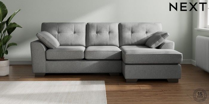 7.2.10 Buy Stamford Buttoned Back Medium Sofa Chaise - Right Hand Chunky Weave Mid Grey Large Square Angle - Gunmetal from the Next UK online shop Click here to use our accessible website