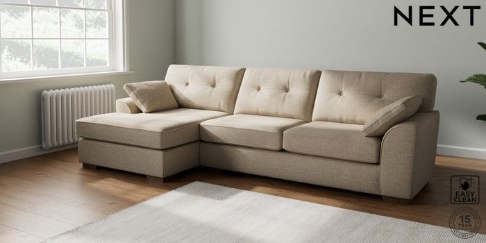 7.2.6 Buy Stamford Buttoned Back Large Sofa Chaise - Left Hand Boucle Weave Easy Clean Dark Natural Large Square Angle - Mid from the Next UK online shop Click here to use our accessible website