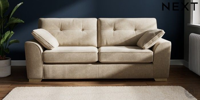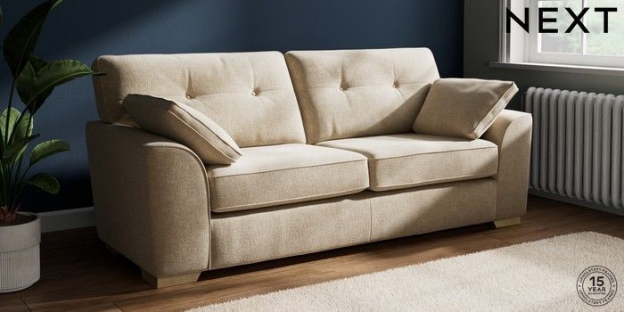 7.2.10 Buy Stamford Buttoned Back 3 Seater Sofa Chunky Weave Cream Large Square Angle - Light from the Next UK online shop Click here to use our accessible website