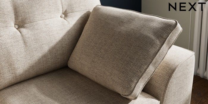 7.2.10 Buy Stamford Buttoned Back 2 Seater Small Sofa Chunky Weave Mid Natural Large Square Angle - Chrome Metal from the Next UK online shop Click here to use our accessible website