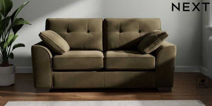 6.12.1 Buy Stamford Buttoned Back 2 Seater Sofa Fine Chenille Easy Clean Dark Moss Green Large Square Angle - Gunmetal from the Next UK online shop Click here to use our accessible website