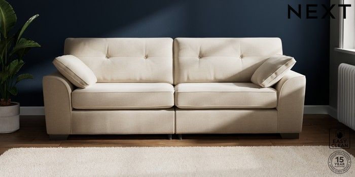 7.2.10 Buy Stamford Buttoned Back 4 Seater Sofa Fine Chenille Easy Clean Oyster Large Square Angle - Gunmetal from the Next UK online shop Click here to use our accessible website