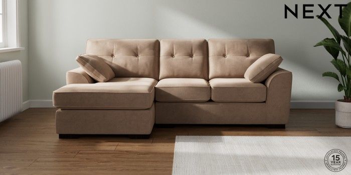 7.2.10 Buy Stamford Buttoned Back Small Sofa Chaise - Left Hand Luxe Chenille Mid Natural Large Square Angle - Dark from the Next UK online shop Click here to use our accessible website