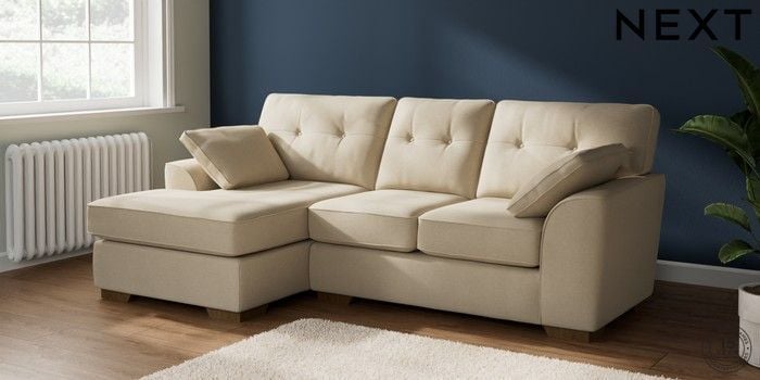 7.2.10 Buy Stamford Buttoned Back Small Sofa Chaise - Left Hand Natural Mix Light Natural Large Square Angle - Mid from the Next UK online shop Click here to use our accessible website