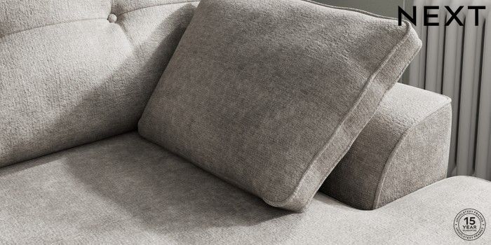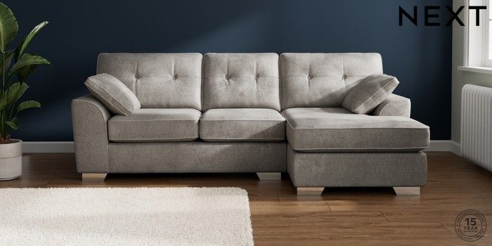 7.2.6 Buy Stamford Buttoned Back Medium Sofa Chaise - Right Hand Plush Chenille Light Grey Large Square Angle - Chrome Metal from the Next UK online shop Click here to use our accessible website