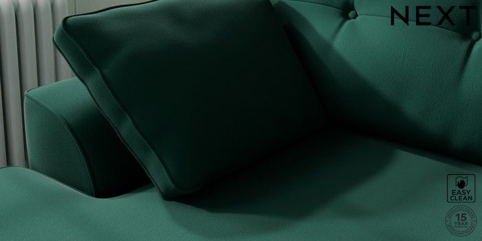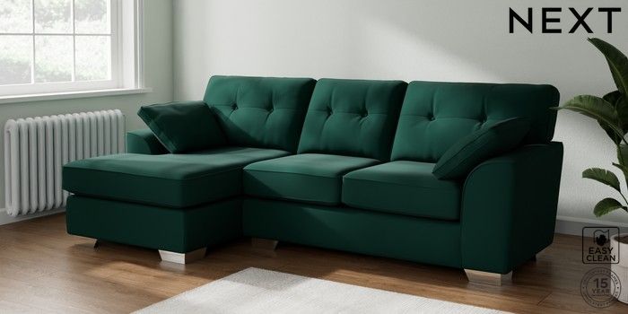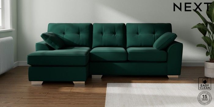 7.2.6 Buy Stamford Buttoned Back Medium Sofa Chaise - Left Hand Plush Velvet Easy Clean Bottle Green Large Square Angle - Chrome Metal from the Next UK online shop Click here to use our accessible website