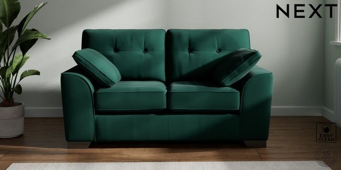 7.2.6 Buy Stamford Buttoned Back 2 Seater Small Sofa Plush Velvet Easy Clean Bottle Green Large Square Angle - Gunmetal from the Next UK online shop Click here to use our accessible website