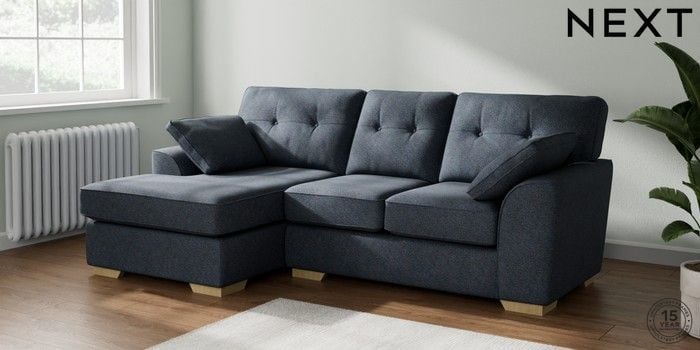 6.12.1 Buy Stamford Buttoned Back Small Sofa Chaise - Left Hand Tweedy Chenille Navy Blue Large Square Angle - Light from the Next UK online shop Click here to use our accessible website
