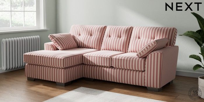 7.3.1 Buy Stamford Buttoned Back Small Sofa Chaise - Left Hand Bold Chenille Stripe Dark Pink Large Square Angle - Gunmetal from the Next UK online shop Click here to use our accessible website
