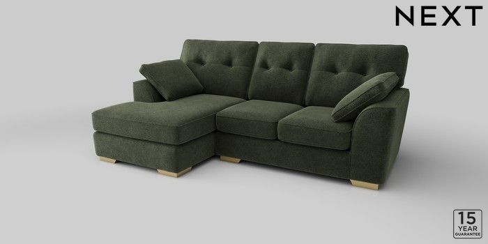 6.12.1 Buy Stamford Buttoned Back Small Sofa Chaise - Left Hand Boucle Chenille Dark Moss Green Large Square Angle - Brushed Brass from the Next UK online shop Click here to use our accessible website