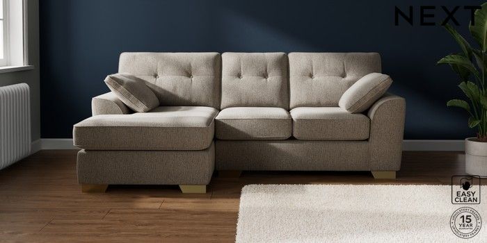 7.2.10 Buy Stamford Buttoned Back Small Sofa Chaise - Left Hand Chunky Boucle Easy Clean Dove Large Square Angle - Brushed Brass from the Next UK online shop Click here to use our accessible website