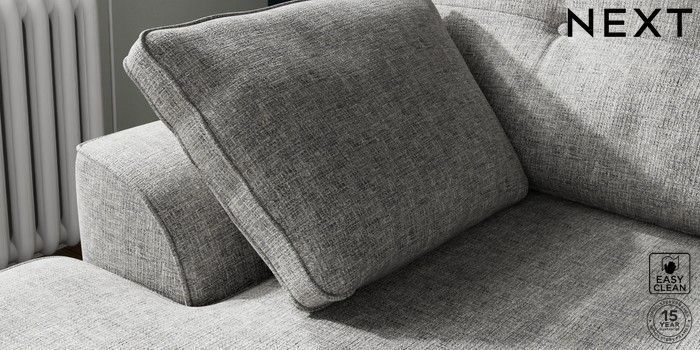 7.2.10 Buy Stamford Buttoned Back Small Sofa Chaise - Left Hand Chunky Boucle Easy Clean Light Grey Large Square Angle - Brushed Brass from the Next UK online shop Click here to use our accessible website