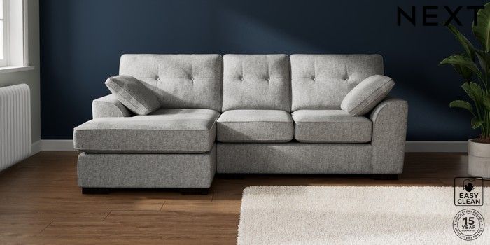 7.2.10 Buy Stamford Buttoned Back Small Sofa Chaise - Left Hand Chunky Boucle Easy Clean Light Grey Large Square Angle - Dark from the Next UK online shop Click here to use our accessible website