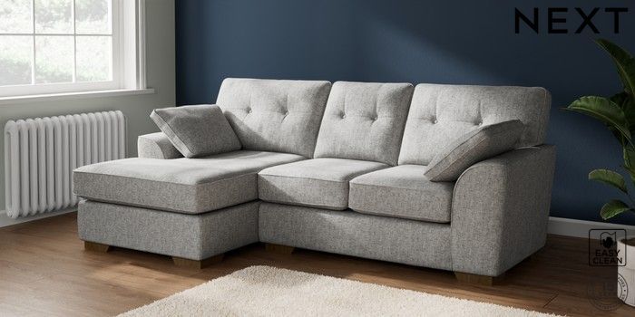 7.2.10 Buy Stamford Buttoned Back Small Sofa Chaise - Left Hand Chunky Boucle Easy Clean Light Grey Large Square Angle - Mid from the Next UK online shop Click here to use our accessible website