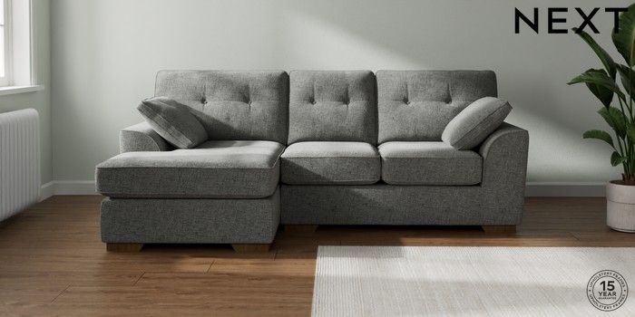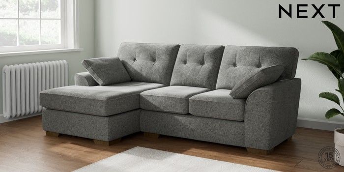 7.2.6 Buy Stamford Buttoned Back Small Sofa Chaise - Left Hand Chunky Chenille Dark Grey Large Square Angle - Mid from the Next UK online shop Click here to use our accessible website