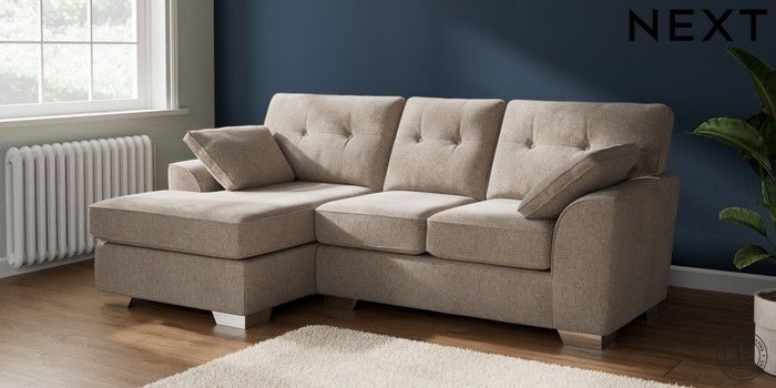 6.12.1 Buy Stamford Buttoned Back Small Sofa Chaise - Left Hand Chunky Chenille Light Dove Large Square Angle - Chrome Metal from the Next UK online shop Click here to use our accessible website