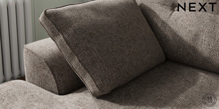 7.2.10 Buy Stamford Buttoned Back Small Sofa Chaise - Left Hand Chunky Chenille Mink Brown Large Square Angle - Gunmetal from the Next UK online shop Click here to use our accessible website