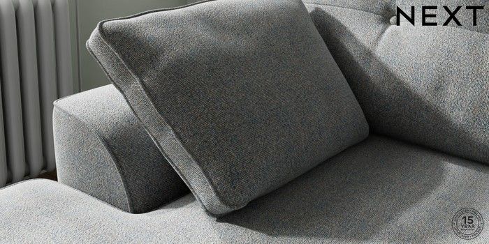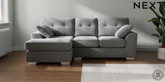 7.2.10 Buy Stamford Buttoned Back Small Sofa Chaise - Left Hand Chunky Marl Mid Grey Large Square Angle - Chrome Metal from the Next UK online shop Click here to use our accessible website