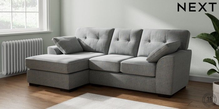 7.2.10 Buy Stamford Buttoned Back Small Sofa Chaise - Left Hand Chunky Marl Mid Grey Large Square Angle - Dark from the Next UK online shop Click here to use our accessible website
