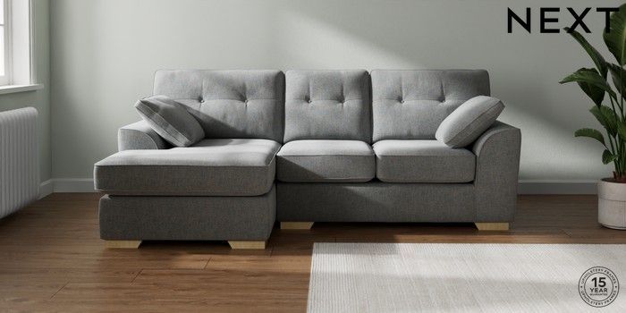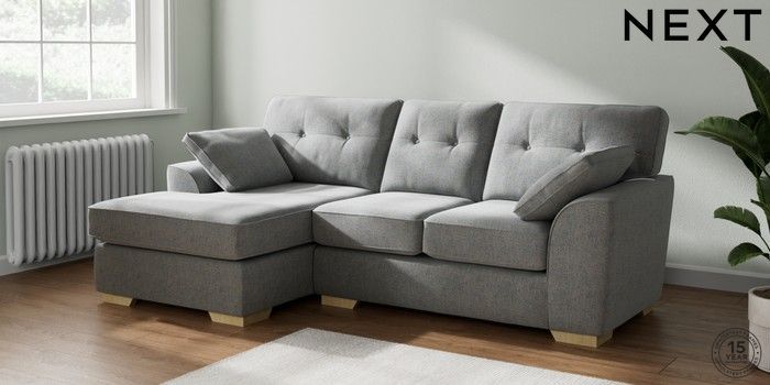 7.2.10 Buy Stamford Buttoned Back Small Sofa Chaise - Left Hand Chunky Marl Mid Grey Large Square Angle - Light from the Next UK online shop Click here to use our accessible website