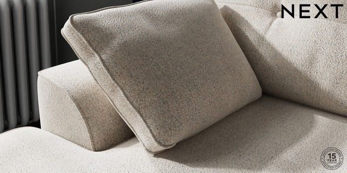 7.2.10 Buy Stamford Buttoned Back Small Sofa Chaise - Left Hand Chunky Marl Oyster Large Square Angle - Chrome Metal from the Next UK online shop Click here to use our accessible website